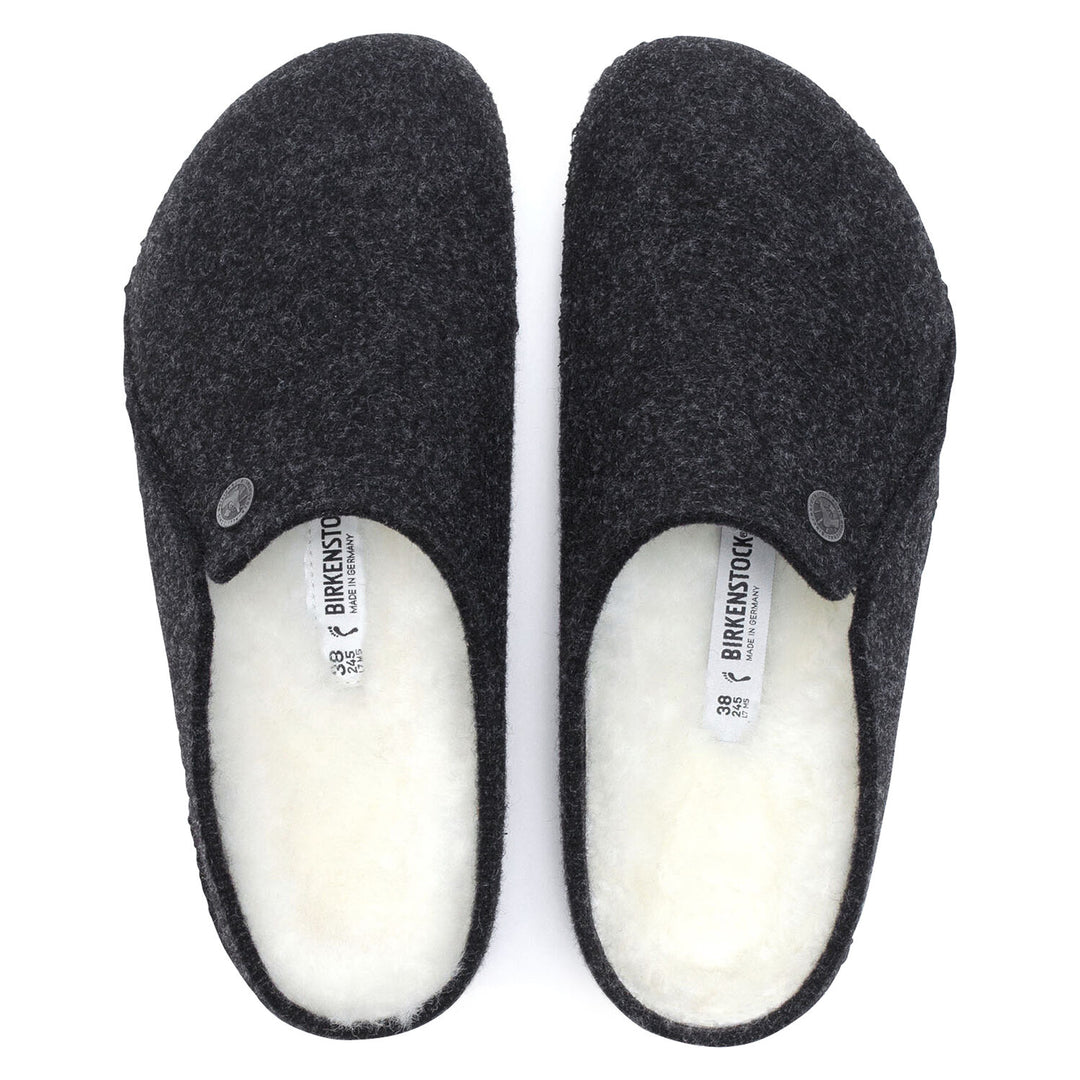 The BIRKENSTOCK Zermatt is our first true slipper. It features our iconic cork latex footbed. And to keep you extra cozy, it’s fully lined in genuine shearling that will keep your feet warm all winter long. The upper is made of soft wool felt.