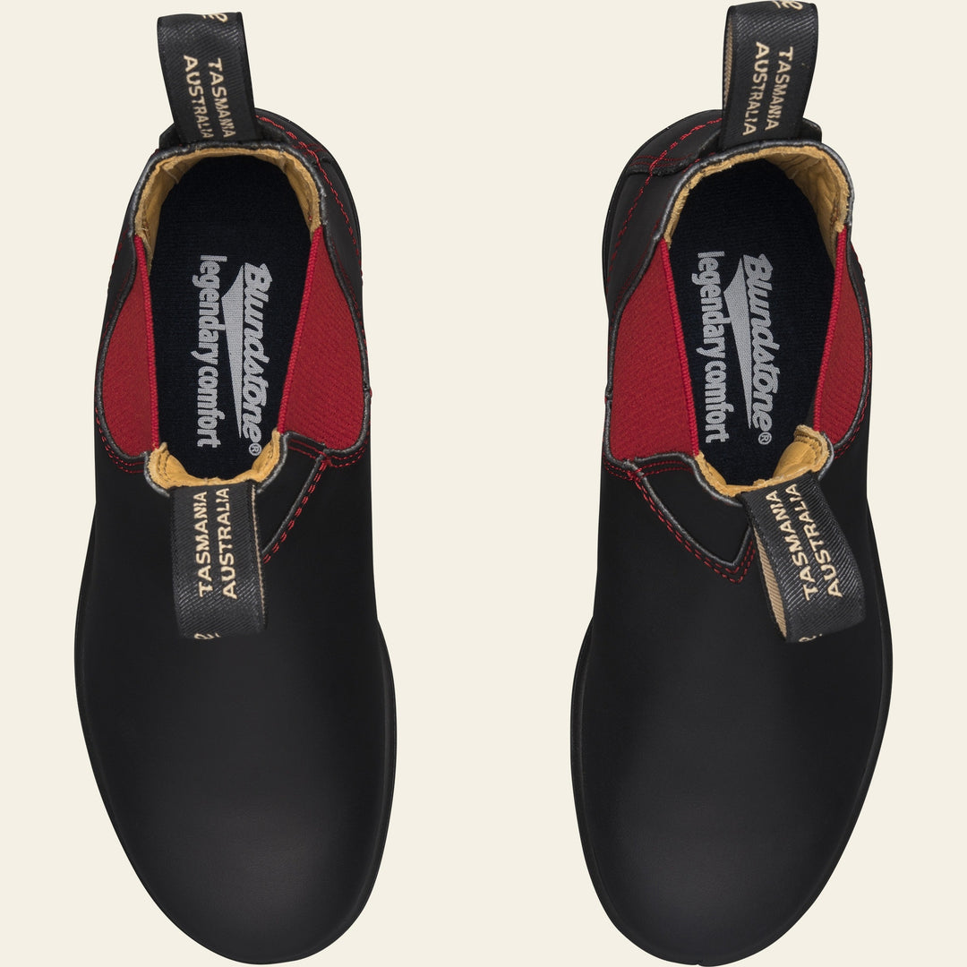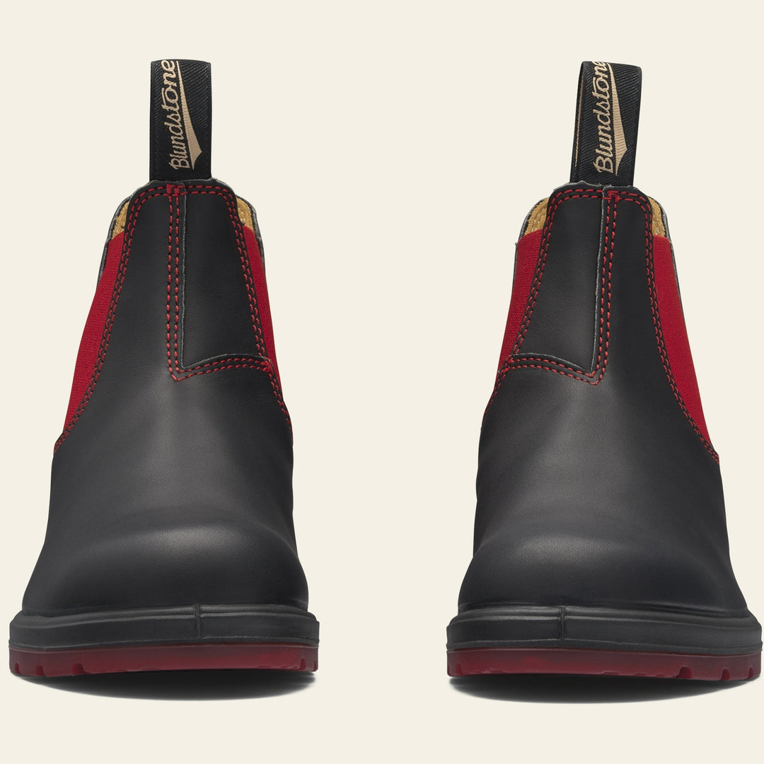 Add a pop of color to your wardrobe with the 1316 boot from Blundstone, a fun update to their classic boots. The 1316 has all the features you know and love from a Blundstone boot: a leather lining, all-weather readiness, style, and durability, but also features pops of red in the elastic gore, stitching, and outsole.