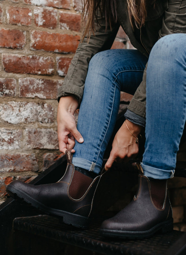 The original, iconic Blundstone #500 series boot. When Blundstone launched the iconic waterproof Chelsea boot over 50 years ago, they were worn by farmers, builders and anyone else who needed footwear that could handle a hard day’s work. Shaped to the human foot for ultimate comfort, this classic boot goes with you every step of the way–whether you’re navigating big cities to trekking parts unknown.