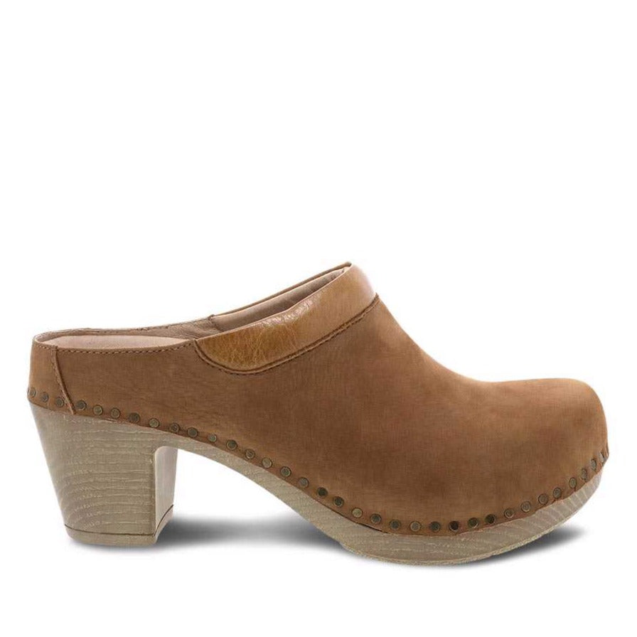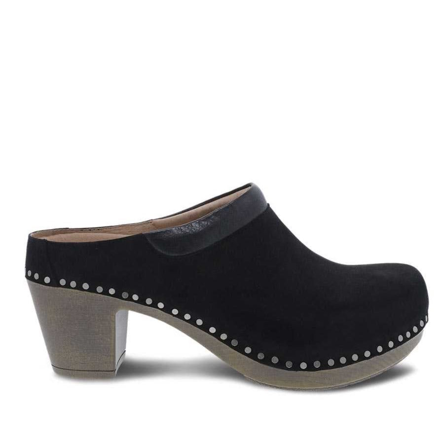 Dress up your day in the Sammy mule. This open back heeled clog features nailhead trim detail and Nubuck uppers, treated with 3M Scotchgard protector for stain resistance, and our signature stapled construction. A leather covered, removable energy return EVA footbed with Dansko Natural arch technology offers added comfort and support, while the lightweight PU outsole provides long-lasting wear.