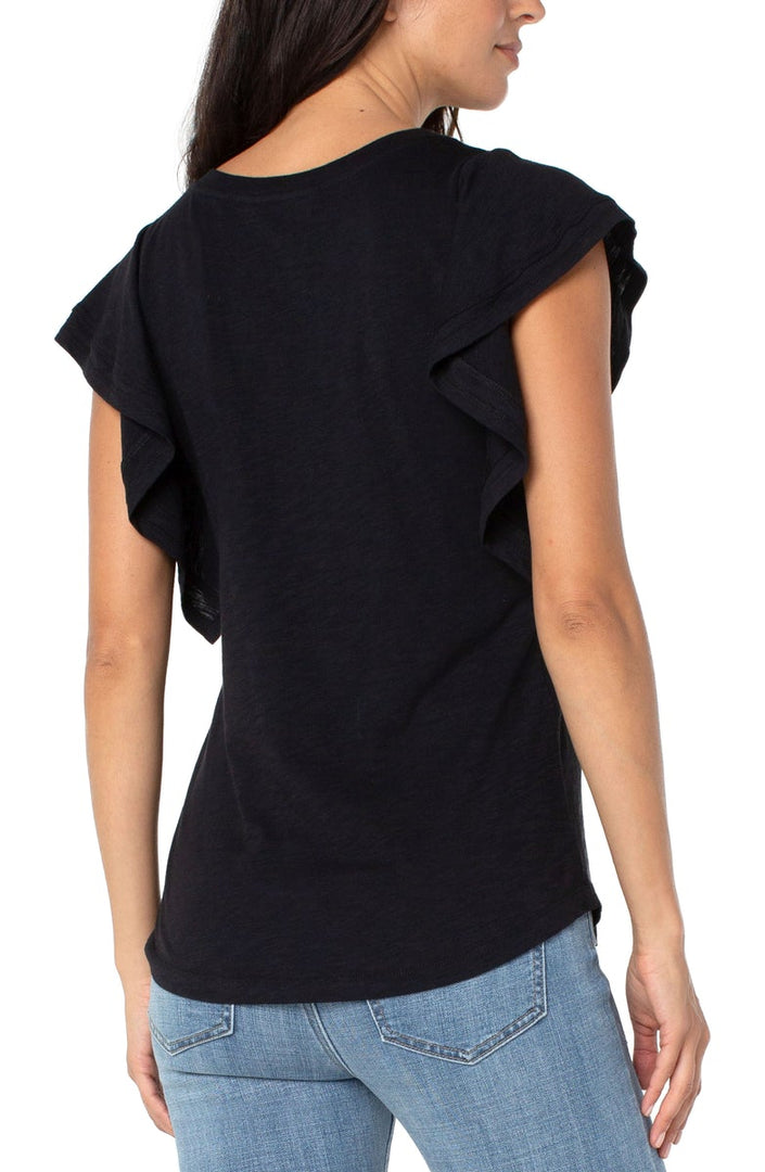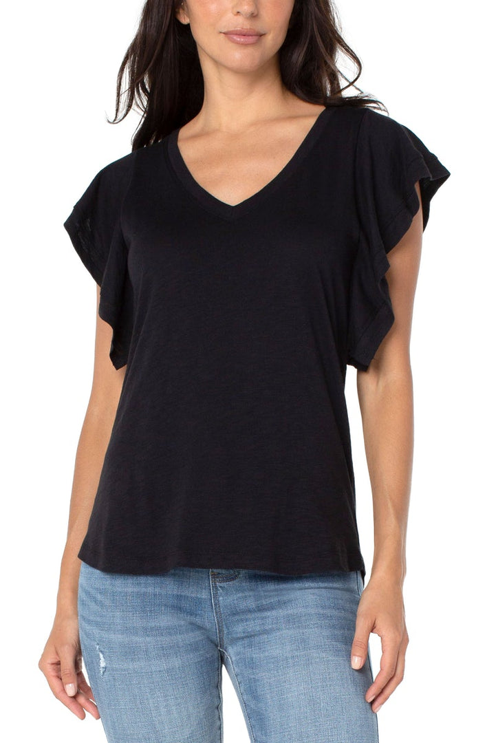 Dress it up or down, this top makes a statement with flutter sleeves. A great way to add a little flare to a classic tee!Â