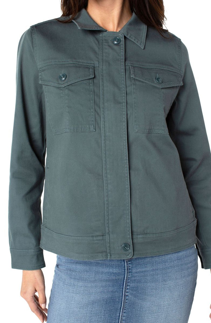 Liverpool’s Utility Jacket is perfect for anyone that wants to join in on the trend. Made with super soft cotton dobby with great stretch so it’s not constricting. A little sassy, a little edgy, to give you styling versatility!