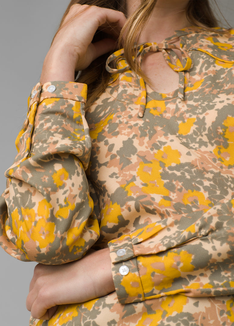 This top gives you options. Leave the front ties loose and roll up the sleeves (thanks to the buttoned cuffs) for a more relaxed vibe, or tie the front and throw on a blazer for a more formal feel. No matter how you decide to wear it, we think you’re going to love the subtle texture, feminine silhouette, and flowy feel.