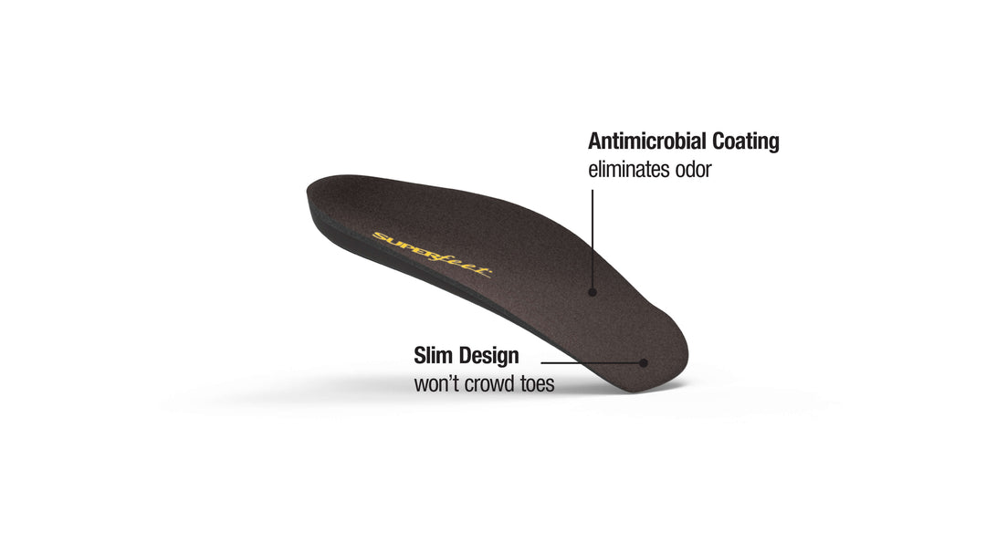 The support your shoes are missing. Add exceptional comfort to your footwear – it’s easy with Superfeet® EASYFIT insoles. Our patented orthotic design hugs your arches and cradles your heels to ease aches and pain, combat foot fatigue and keep you going all day long. Revitalize your feet, even in your slimmest-fitting shoes. Made for flat shoes and boots with a heel height of 1 inch or less.